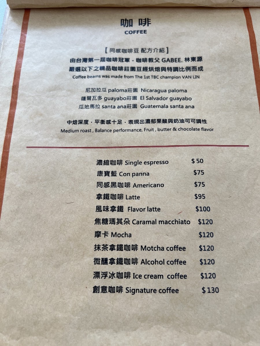 同感咖啡 Compassion Cafe Menu